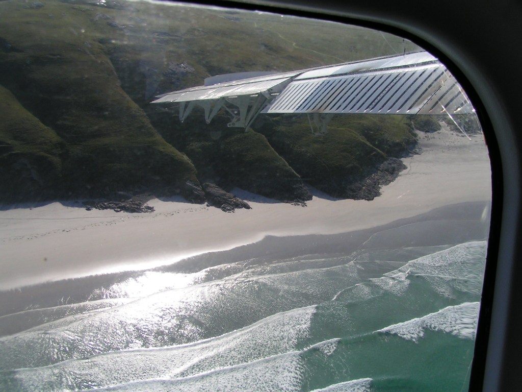 Coming in to land View north to south from port side of plane Banking towards final approach Where water meets land