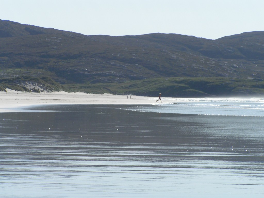 On a Walk to Eoligarry Traigh Eais, looking from north to south – a lovely day The Atlantic surf A lonely flower A footprint Running into the sea View from north – where east meets west